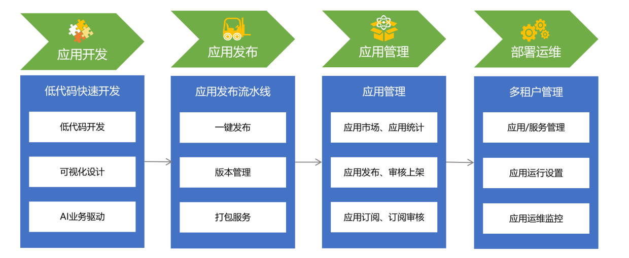 基于“NativeAI+NativeCloud+LowCode”三大基础技术和开放标准,为企业提供“企业AI原生+云原生+低代码”的高效开发运维一体化平台,赋能企业智能化,助力企业实现AI和云时代的信息化战略升级